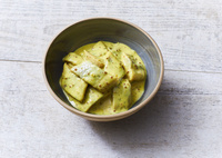 Sałatka śledziowa w pikantnym miodowo -musztardowym sosie curry z koperkiem.
