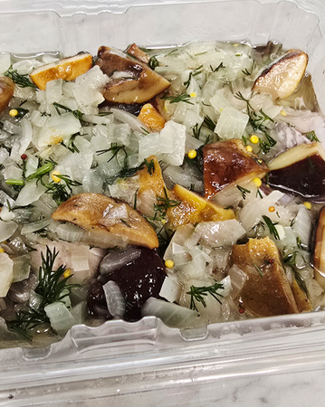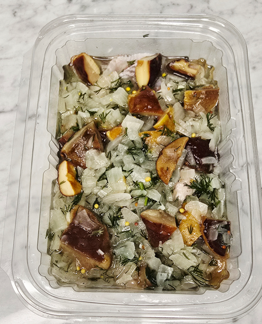 • Skład: śledź matias holenderski,podgrzybki ,cebula, , koperek, ziarno gorczycy, ocet, sól, pieprz